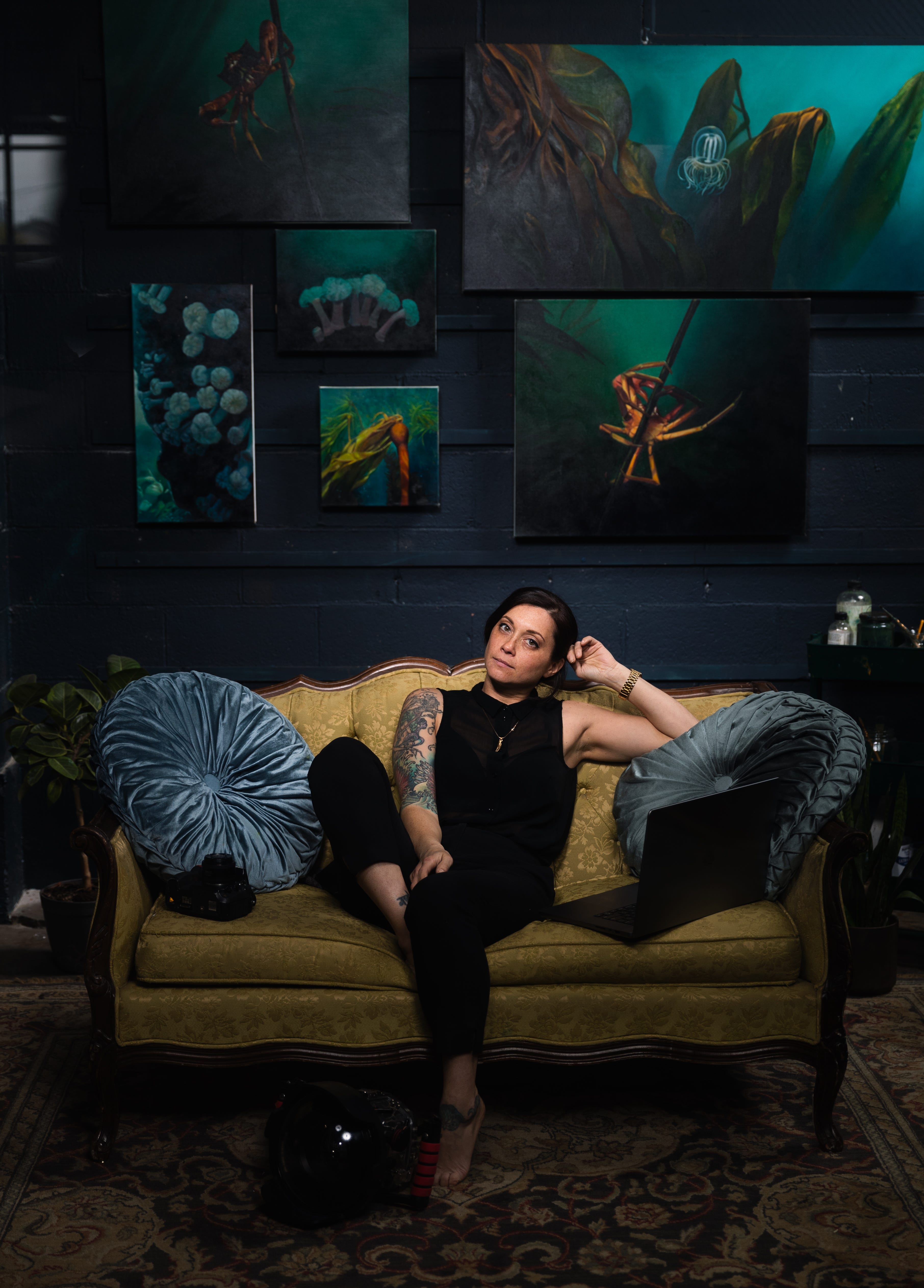 Novack has been a cold diver for 16 years and uses her underwater photography as references for her paintings. Novack says, “My paintings are a product of my journey into self-exploration and are a reflection of my longing to know the unknown parts of the ocean, and the unknown parts of myself."